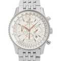 - クロノグラフ機能に加え航空用計算尺を装備し、上昇速度、燃料消費量、マイル/キロメートル/海里の換算などあらゆる計算が可能です。ダイアル中央の赤い1/100時間計は、60進法の時間を統計計算などに適用させる為1/100に変換しないで直読できる様になっており、主にQC活動やラインの生産効率を見るときに使います。最近のブライトリングはケースの大型化が進んでいますが、このモデルはケース径38mmですので日本人の腕に馴染み易いサイズではないでしょうか。