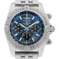 - ブライトリング初の完全自社開発・自社製造のクロノグラフキャリバーB01を搭載したモデルです。従来のキャリバーよりもスリムな設計のため、それを内蔵するケースもわずかに薄型化されています。ただしケースバックの造りなどは、さらに堅牢なものに改良されており、従来の防水性能を300mから500mへまでスペックアップさせたのは驚異的な成果と言えるでしょう。こちらは爽やかなブルーダイアルの日本限定モデルです。