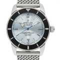 - こちらは1950年代の初代スーパーオーシャンにインスパイアされて生まれたモデルです。クラシカルの中にモダンなデザインを合わせています。日本限定200本のモデルで、爽やかなアイスブルーの文字盤が特徴的です。
