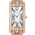 - ダイヤを贅沢に敷き詰めたK18ローズゴールドケースは、「キング・オブ・ダイヤモンド」と呼ばれ世界的に名高いハリーウィンストンを象徴するデザインです。ケースの上下にあしらわれたアーチ形のラグは、ニューヨーク5番街にあるハリーウィンストン本店の玄関ドアをモチーフにデザインされました。ジュエリーメーカーらしいそのゴージャスなフォルムと、ゴールドを使ったその質感が高級感をかもし出しています。