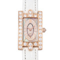 - ケースサイドにまでダイヤを贅沢に敷き詰めたローズゴールドケースは、「キング・オブ・ダイヤモンド」と呼ばれ世界的に名高いハリーウィンストンを象徴するデザインです。ケースの上下にあしらわれたアーチ形のラグは、ニューヨーク5番街にあるハリーウィンストン本店の玄関ドアをモチーフにデザインされました。オーバル型のデザインを取り入れた文字盤が特徴で、女性的でエレガントな美しさを醸し出しています。