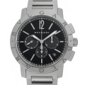 - イタリアの名門ジュエラー・ブルガリを代表するモデルブルガリブルガリ"のクロノグラフを入荷いたしました。ベゼルにBVLGARIの文字が刻印された存在感のある41mmステンレススティールケースと、ブラックダイアルの組み合わせがシックでクールなデザインに仕上がっています。