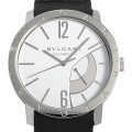 - ブルガリブルガリ リザーブ・ド・マルシェ手巻きモデルです。エレガンスで落ち着いた雰囲気を持ちながら、ベゼルのブルガリのロゴが強い個性を主張する一本ですケースは手首にフィットするよう緩やかに湾曲しており、快適な着け心地を実現します。フレデリック・ピゲ社製の手巻きムーブメントを搭載。巻き止まりはありません。