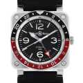 - BR 03 GMTは、最大3カ国の時刻を同時に表示できるユニークなタイムピースです。赤い三角形の先端を持つGMT針は24時間で文字盤を一周し、第二時間帯を指し示します。さらに、ブランド初採用となる両方向回転式の24時間ベゼルを活用することで、第三の時間帯まで読み取ることが可能となりました。操作はシンプルで、別の地域の時刻を知りたい時にはベゼルを回すのみ。時計回りに回すと時間を引き、反時計回りに回すと時間を足すことができます。ブラック&レッドのツートーンベゼルは、赤が昼を、黒が夜を表現し、日中と夜間を視覚的に区分。ブランドのアイコンであるスクエアケースも、この機構を搭載するために特別に再設計されるというこだわりです。