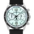 - ヴィンテージ感溢れる”BR V2”コレクションのデザインを継承しつつ、ダイアル全面にスーパールミノバを大胆に塗布した”BR V2-94 FULL LUM”。最大の特徴は、発光色の異なるスーパールミノバを巧みに使い分けた独創的なダイアルデザインです。文字盤にはグリーンに光るスーパールミノバC5を、インデックスと時分針、3時位置のスモールセコンドには同じくグリーン発光のスーパールミノバC3を塗布。そして、クロノグラフ秒針と9時位置の30分積算計にはブルーに光るC3を塗布し、ルミノバを塗り分けて使用しています。昼間は淡いライムグリーンが爽やかな印象を与え、夜になるとそれぞれの蓄光塗料のコントラストが際立ち、視認性と遊び心が両立されたデザインへと変化します。幻想的な表情を見せる独特の美しさは、他ブランドにはなかなか見られない個性と言えるでしょう。