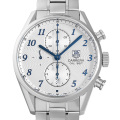 - 伝統と革新、両面を力強く表現する“カレラ ヘリテージ”。こちらのモデルは伝統にオマージュを捧げ、自社製自動巻き・キャリバー1887を搭載しています。フランケ模様のエングレービングを施したシルバーダイヤルと、ハンドやインデックスの光沢のあるブルーのコントラストが独自のラグジュアリー感を漂わせています。パワーリザーブ最長50時間、100m防水。