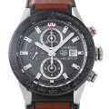 - タグ・ホイヤーが車好きの男性の為に作成したタイムピース“カレラ”。3時位置にデイト、6時、12時位置に縦目のクロノグラフを装備。タキメーターベゼルにはブラックセラミックを採用し、文字盤にはアンスラサイトダイアルを備えています。ムーブメントには新キャリバーとなる“ホイヤー01”を搭載しており、スポーツモデルらしい個性的でモダンな1本です。
