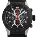 - キャリバー“ホイヤー01”を搭載しており、スケルトンの文字盤やモジュール構造のケースなど、既存のカレラとは全く異なる雰囲気の2015年発表モデルです。ケースやベゼルにはブラックチタニウムカーバイドコーティングを施したステンレススティールを採用しています。スポーツモデルらしい個性的でモダンな1本です。