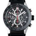 - 新キャリバーとなる“ホイヤー01”を搭載しており、スケルトンの文字盤やモジュール構造のケースなど、既存のカレラとは全く異なる雰囲気の2015年新作です。ケースやベゼルにはブラックチタニウムカーバイドコーティングを施したステンレススティールを採用しています。スポーツモデルらしい個性的でモダンな1本です。