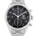 - 2011年バーゼルワールドで発表された“カレラ ヘリテージ クロノグラフ”。フリンケ装飾をあしらったブラックのダイアルに3つのサブカウンターを配し、ムーブメントに自動巻きCal.16を搭載したモデルです。カレラ1887クロノグラフのデザインを受け継ぎ、幅が狭いベゼルやシンプルなスモールセコンドを備えています。