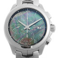 - 1987年から作られている”リンク”。人間工学に基づいて設計されたS字の美しい造形のブレスレットが特徴のモデルです。こちらは日本限定350本のスペシャルエディションで、裏蓋には日本列島が描かれています。ブラックのマザー・オブ・パール文字盤が、さながら夜空に輝く月のような幻想的な光を放ちます。