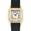 - 多くの女性を虜にし根強い人気を誇るミニパンテール。イエローゴールド素材を使用し、ベゼル部分に2重にダイアモンドをセッティングした人気の高い仕様です。腕時計としての機能はもちろんですが、ジュエリー感覚でご使用頂けるのも、長年に渡り人気が継続している由縁なのかもしれません。