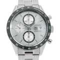 - こちらのモデルが採用する最先端技術を駆使した自動巻ムーブメントキャリバー16では、中央の秒針、分針、時針によってクロノグラフ計測を行います。9時位置にはスモールセコンド・カウンター、3時位置には日付表示を備えています。 フランジにスペースをとったデザインで、秒の読み取りが容易になっています。ベゼルに付いたタキメータースケールを使うと、平均速度の計測が可能です。サファイヤクリスタルの裏蓋からはムーブメントが作動する様子を見ることができます。