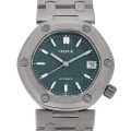 - 時計界の巨匠 ジェラルド・ジェンタ 氏が1979年にデザインした伝説的モデル「ロコモティブ」を現代に蘇らせた、クレドールの記念すべき2025年発売の復刻モデルです。コンセプトは「Move Forward(前進)」。これは、ジェンタ氏への敬意を胸に、新たな道を切り拓くという意味が込められています。このモデルの最大の特徴は、鉄道の進行信号を象徴する鮮やかなグリーンの文字盤です。文字盤には、時計の象徴である六角形ベゼルへのオマージュとして、複雑な幾何学模様の六角形パターンが施されています。ムーブメントには、クレドール専用の新型自動巻き「Caliber CR01」を搭載。