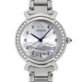 - 「グラン・ブルー」をテーマに、海や空の広大で穏やかな青の世界を表現したモデルです。ダイアルには彫金技術を用いて波、星、泡を繊細に描き、リューズとインデックスにはブルーサファイアがあしらわれています。ケースサイズは横27mmとコンパクトながらも、宝石の輝きが腕元を華やかに彩り、上品でゴージャスな雰囲気を演出します。