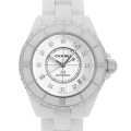 - 2000年に華々しいデビューを飾り時計界に革命を与えたと言われるJ12シリーズ。セラミックをケースとブレスレットに採用するという斬新な作りが魅力的で、瞬く間に多くのファンの心をとらえ世界中で爆発的ヒットを収めました。インデックスに配された12ポイントのダイヤモンドが、より一層の高級感を演出しています。200mの防水設計がされており、マリンスポーツにも対応可能です。
