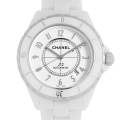 - シャネル渾身の力作であり、2000年の発表から世界中で人気を博している“J12”。有名なヨットレースが名前の由来となっており、滑らかな流線型のシルエットが魅力です。材質には高硬度という特性を持つセラミックを使用しているため、傷が付き難く取り扱いが楽な時計でもあります。200mの防水設計がされており、マリンスポーツにも対応可能です。