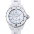 - 2014年に発表された世界2000本限定モデルです。従来のホワイトセラミックをベースに、ブルールミノバの数字を採用しているのが特徴です。バックル部分はバネになっていますので、ネイルをしている爪でも簡単に取り外すことができます。ニットやジャケットからシャネルのホワイトの時計がチラッと見えるととてもお洒落ですね。