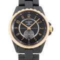 - 365日使えるデイリーウォッチをコンセプトにデザインされた「J12-365」。 回転ベゼルが無くなり、ダイアルにはギョーシェ、6時位置にスモールセコンドを配したデザインになります。シャネル独自の配合で作られたベージュゴールドとセラミックのコンビネーションも抜群です。普段使いにもドレスコードにも対応できる1本です。100m防水。