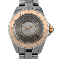 - 2011年に発売されたこの“クロマティック”は、今までの「黒」や「白」を基調としたシャネルカラーから、2つを融合させた新色・新素材で新しいJ12を表現しています。今まで採用されていたセラミックにチタンを加えた素材を使用しており、ステンレスと比べて4分の3という軽い重量ですが8倍もの硬度を誇り、傷つきにくく使いやすい一本となっています。ゴールドより柔らかな佇まい、ベージュよりも高貴な絶妙な色合いが特徴の“ベージュゴールド”をベゼルに採用し、今までにはない美しく上品な雰囲気を醸し出しています。
