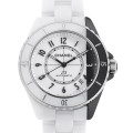 - シャネル渾身の力作であり、2000年の発表から世界中で人気を博している“J12”。こちらは、J12が誕生してから20周年を迎えた記念すべき2020年に発表されました。ココ・シャネルの語録に、「黒はオールマイティ。白も同じ。この2色は、絶対的な美しさの象徴。見事に完璧な調和。」とありますが、その2色を併せた美しく完璧な調和がとれたモデルとなっています。ケースバックはシースルーになり、ムーブメントの動きが楽しめます。シャネル独自の新しい自動巻きムーブメント「キャリバー 12.1」を搭載。50m防水。