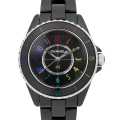 - シャネルのフラグシップでもあるJ12ですが、差し色としてレインボーカラーが用いられていることが大きな特徴です。さながらダンスフロアのリズムが聞こえてくるような、そんな一本に仕上がりました。防水性は50m。