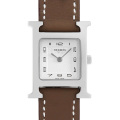 - エルメスの頭文字である“H”を大胆にアレンジしたケースデザインが特徴的なモデルです。シルバー文字盤にアラビアインデックスを配置し、12時位置にブランドロゴがプリントされています。シンプルなデザインのため様々なシーンでご使用頂けます。