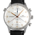 - 1998年にIWC創業130周年を記念して日本で先行発売されたモデルです。ムーブメントの枠や板には金色仕上げが施され、さらに2本のクロノ針が青と赤に塗り分けられています。ダイアルがアイボリーではなくシルバーであることも見逃せません。ムーブメントには手巻きムーブメントを搭載。シースルーバックを採用しており、スプリット針を抑えるシステムを覗く事が出来ます。