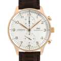 - ポルトギーゼ クロノグラフの金無垢モデルです。エレガントな雰囲気と、高級感溢れるピンクゴールドケースの相性が抜群です。自動巻きクロノグラフ Cal.79350を搭載。3気圧防水(日常生活防水)。