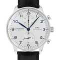 - 通称「青針」と呼ばれている"ポルトギーゼ"です。すっきりとしたシルバー文字盤に、ブルーの針とアラビアインデックスがきれいなモデルです。1930年代にポルトガルの時計商が、IWCに発注した事が"ポルトギーゼ"の始まりと言われており、IWCを代表するシリーズとなっています。尚、この人気モデルは2011年にマイナーチェンジされており、ピンバックルからフォールディング・バックルに変更され実用性が高くなりました。