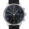 - 1930年代にポルトガル商人がオーダーメイドした時計を原形として、製造が開始されたポルトギーゼ。インダイアルまでブラックで統一した、シックで精悍な面持ちの時計です。この人気モデルは2011年にマイナーチェンジされており、ピンバックルからより実用性が高いフォールディング・バックルに変更されました。