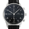 - 1930年代にポルトガル商人がオーダーメイドした時計を原形として、製造が開始された“ポルトギーゼ”。インダイアルまでブラックで統一した、シックで精悍な面持ちの時計です。この人気モデルは2011年にマイナーチェンジされており、ピンバックルからより実用性が高いフォールディング・バックルに変更されました。