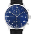 - 1930年代、ポルトガルの商人がオーダーメイドした時計を原形として製造が開始された“ポルトギーゼ”。シックで落ち着きのあるブルーダイアルと針・インデックスのコントラストが美しいデザインです。こちらはキャリバー69000シリーズのIWC自社製ムーブメントを初めて搭載した、IWC創立150周年モデルです。パワーリザーブ46時間のCal.69355を搭載。3気圧防水。2000本限定。