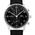 - 1930年代、ポルトガルの商人がオーダーメイドした時計を原形として製造が開始されたポルトギーゼ。落ち着きのあるブラック文字盤に、シルバーの針とアラビアインデックスがキレイなモデルです。ムーブメントには同社の高い技術力が生み出した毎時28,800振動のCal.69355を搭載しています。3気圧防水。パワーリザーブ46時間。両開きDバックル仕様です。