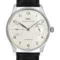 - 1930年代にポルトガル商人がオーダーメイドした時計を原形として製造が開始されたポルトギーゼ。現在人気を支えていますが、こちらはそんな「ポルトギーゼ オートマチック」が発売される以前の2000年に限定販売されたモデルです。販売年にちなみ限定数は2000本。さらにこちらは250本のみ販売されたプラチナ素材の非常な貴重な1本です。シルバーダイアルにアラビアインデックスと非常に視認性がよく日常使いに適しながら、プラチナ素材ならではのずしりとした重みが魅力です。