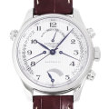 - ムーブメントに自動巻きL697.2(ETA A07L11ベース)を搭載した“マスターコレクション”のレトログラードモデルです。センターセコンドの3針に加え、12時位置の曜日、3時位置の日付、6時位置のパワーリザーブ、9時位置の第二時間帯を備えており、ダイアル上に7つの針を持ちます。パワーリザーブ以外はレトログラードになっています。パワーリザーブ46時間対応、30気圧防水。