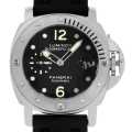 - パネライのロングセラーモデル「PAM00024 ルミノールサブマーシブル」。サテン仕上げとポリッシュ仕上げを巧みに使い分けたケースは、美しいだけではなく、時間の読み取りの妨げにならないよう工夫されています。ムーブメントにはクロノメーターを取得した機械式自動巻きムーブメント「OP III」を搭載しています。