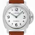 - 2002年に登場し、パネライでは数少ない白文字盤を備えたPAM00114。スモールセコンドさえも排除したシンプルな二針タイプです。ムーブメントには信頼性の高い手巻き「Cal.OPX」を搭載しています。今作よりシースルーバックになりました。300m防水。