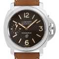 - 2015年にヨーロッパで先行発売された「ルミノールマリーナ ロゴ」です。ベーシックでありながらパネライの基本となる要素を凝縮した正統派のモデルです。ダイアル6時位置の「OP」ロゴと、ヌバック調のレザーベルトが特徴です。
