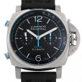 - パネライと海の世界との伝説的な絆から誕生した「ルミノール ヨット チャレンジ」。こちらは直径44mmのクッション型ケース9時側に配置されたクロノグラフボタンが特徴的なモデルです。 ムーブメントにはリセット、再スタート不要のフライバッククロノグラフ機能付きの自動巻きCal.P.9100を搭載。動いているクロノグラフ針を即座にゼロ位置に戻し、再スタートすることができます。ダイアル中央にクロノグラフの秒針と分針、3時側インダイアルに12時間積算計を配置。スタイリッシュで機能性の高い優れた1本です。パワーリザーブ72時間。10気圧防水。