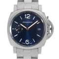 - パネライ史上最小、最薄「ルミノール ドゥエ」。ケースは38mmとスーツスタイルにも着け易いルミノールです。ムーブメントには3日間パワーリザーブのパネライ自社製Cal.P.900を搭載しており、洗練されたエレガントなデザインも兼ね備えたモデルとなっております。3時位置にデイト表示、9時位置にスモールセコンドを配置し、視認性に優れたモデルです。防水機能は3気圧です。