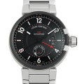 - メンズ・レディースを問わず人気が高く、ルイ・ヴィトンの定番として存在し続ける“タンブール”シリーズ。厚みのあるケースが特徴的で、その力強く存在感のあるフォルムは16世紀に南ドイツで作られたドラム型時計、つまり世界初の旅行用時計に由来しています。こちらはデイト表示、GMT機構と6時位置に昼夜表示を備えた実用的なモデルです。