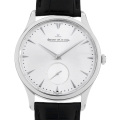 - 2008年に発表され、業界内外から高い評価を受けた“マスターグランド・ウルトラスリム”。薄型時計は通常、ローターが無い分厚みを抑えることができる手巻きモデルが一般的ですが、こちらは自動巻きで僅か8.6mmのケース厚を実現しています。新型の自動巻きムーブメントCal.896をシースルーバックを通して楽しめるのもファンには嬉しいところ。無駄の無い輪郭、そして端正な表情、滑らかな素材感などシンプルな洗練さを追求したこだわりが表現されている超薄型ウォッチです。