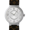 - モノグラムパターンのホログラムを施したシルバーダイアルが特徴的な“タンブール モノグラム”です。ケース径33mmですので男女問わずお使い頂けます。