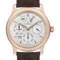 - マニファクチュールメーカーの代表的存在として君臨し続けるジャガールクルト。こちらはツインバレルを採用したことにより、8日間のパワーリザーブが可能となったパーペチュアルモデルです。ピンクゴールドのケースにシルバーダイアルがエレガントな印象に仕上がっています。