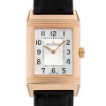 - 1930年頃、貴族の間で盛んだったポロの競技中に、衝撃からガラスとダイアルを保護する目的で考案された“レベルソ"。ケースそのものを180度回転するという構造は、当時革新的な技術として多くの注目を集めました。こちらはクラシックな2針のレベルソです。手巻き式のジャガー・ルクルト製キャリバー822A/2を搭載しています。素材にピンクゴールドを使用しており、シルバーダイアルと相まって上品な印象のモデルです。