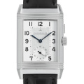 - ラテン語で「回転させる」という意味を持つレベルソ。1930年頃、貴族の間で盛んだったポロ競技で運動中の衝撃からガラスとダイヤルを保護する目的で考案された時計です。ケースそのものを180度回転するという構造は、当時革新的な技術として多くの注目を集めました。レベルソ デュオは表面と裏面でそれぞれの時間を表示します。シルバーダイアルは時分針とスモールセコンドのシンプルな表情。ブラックダイアルは時分針にデイ/ナイト表示を備えています。