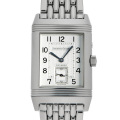 - ラテン語で「回転させる」という意味を持つレベルソ。1930年頃、貴族の間で盛んだったポロ競技で運動中の衝撃からガラスとダイヤルを保護する目的で考案された時計です。ケースそのものを180度回転するという構造は、当時革新的な技術として多くの注目を集めました。こちらは名前の通り、背中合わせになった昼と夜の二つの文字盤が回転し時刻を示します。レクタンギュラー(長方形)にこだわった角型ムーブメントは、世界に唯一ジャガー・ルクルトだけが専用かつオリジナルを追及し開発を続けています。