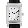 - ラテン語で「回転させる」という意味を持つ“レベルソ”。1930年頃、貴族の間で盛んだったポロ競技で運動中の衝撃からガラスとダイアルを保護する目的で考案された時計です。ケースそのものを180度回転するという構造は、当時革新的な技術として多くの注目を集めました。レクタンギュラー(長方形)にこだわった角型ムーブメントは、世界で唯一ジャガー・ルクルトだけが専用かつオリジナルを追及し開発を続けています。こちらは8日間のパワーリザーブを持つ手巻きCal.874を搭載。ジャンピングパワーリザーブ表示という独創的な機構で、裏蓋の小窓にパワーリザーブを表示します。厚みのあるケースにジャガールクルトらしい繊細な文字盤がさらなる高級感を高めます。