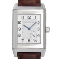 - ラテン語で「回転させる」という意味を持つ“レベルソ”。1930年頃、貴族の間で盛んだったポロ競技で運動中の衝撃からガラスとダイヤルを保護する目的で考案された時計です。現在では反転するケースの特性を生かし、様々なバリエーションを持つモデルになりました。こちらの「レベルソ グランドリザーブ」は8日間のロングパワーリザーブを誇るツインバレルモデルです。ケース裏の小窓に、零~八と漢字でパワーリザーブを表示するのが特徴的です。